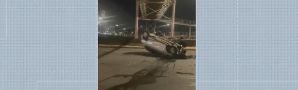 Com o impacto, o veículo foi lançado contra a pilastra de sustentação de uma passarela e capotou, parando com as rodas para cima na contramão.
